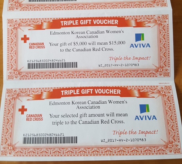 적십자사에 1500불을 기부하였습니다. 그러나 AVIVA Co. 가 세배의 맷칭 기부를